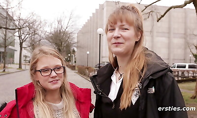 Kinky, red haired granny and a slutty, teen lesbian are playing with each others moist pussy