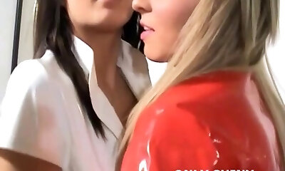 Chesney and Denni teasing firm in shiny panties