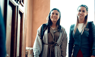 Lesbians Misty Meaner and Laya Rae tempted a third chick for a 3-way