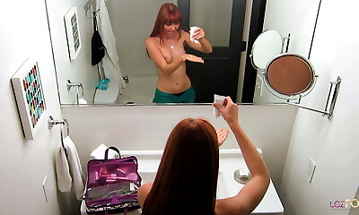 Ash-blonde bombshell of a lezzie is coming over her redheads guest room to fuck her for a good night