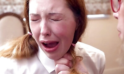 All Girl teaches rubs against my pussy and then slapped by my Milf stepmom