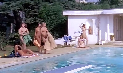 viele nackte teenager in einer mädchenhaften poolparty